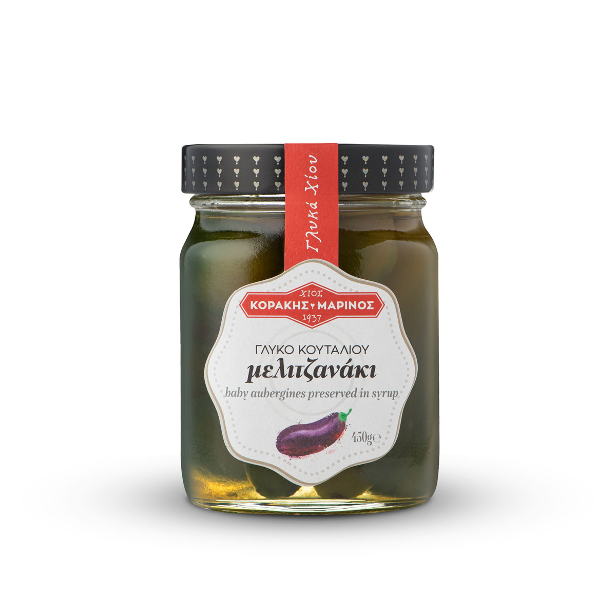 Συστατικά: Μελιτζανάκι (45%), Ζάχαρη, Σιρόπι Γλυκόζης, Μέσο οξίνισης: Κιτρικό οξύ, Συντηρητικό: Σορβικό Κάλιο (έως 0,1%), Αρωματικές ύλες. Το εργοστάσιο επεξεργάζεται και καρπούς με κέλυφος.