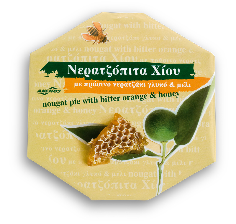 Traditional, handmade Greek “pie “with bits of bitter orange preserve and pure honey.